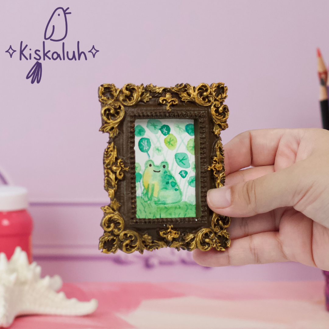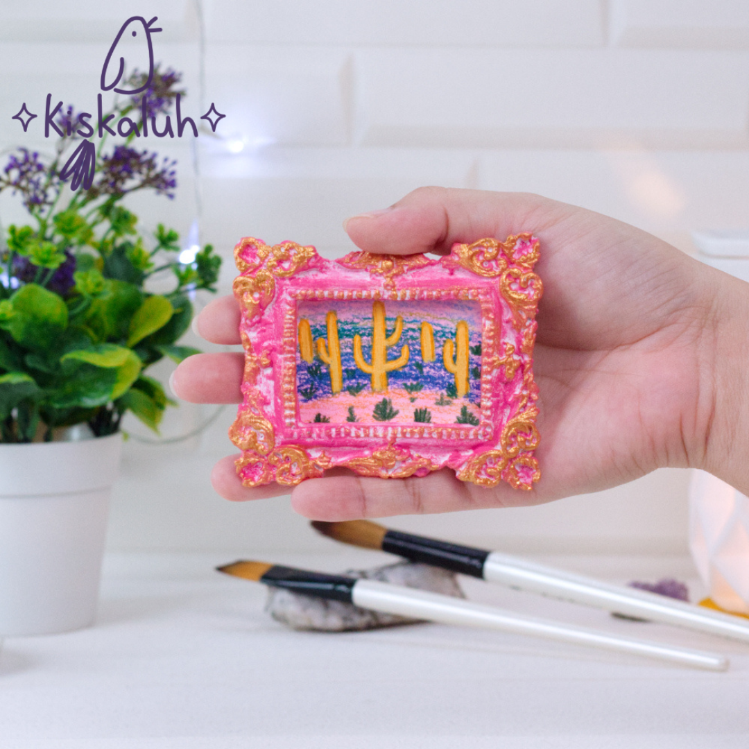 El arte está pegado al marco rectangular el cual está hecho de resina y también pintado a mano.