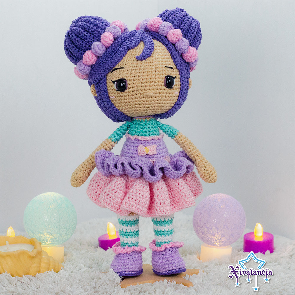 Muñeca tejida Amaya 28 cm, crochet artesanal, amigurumi