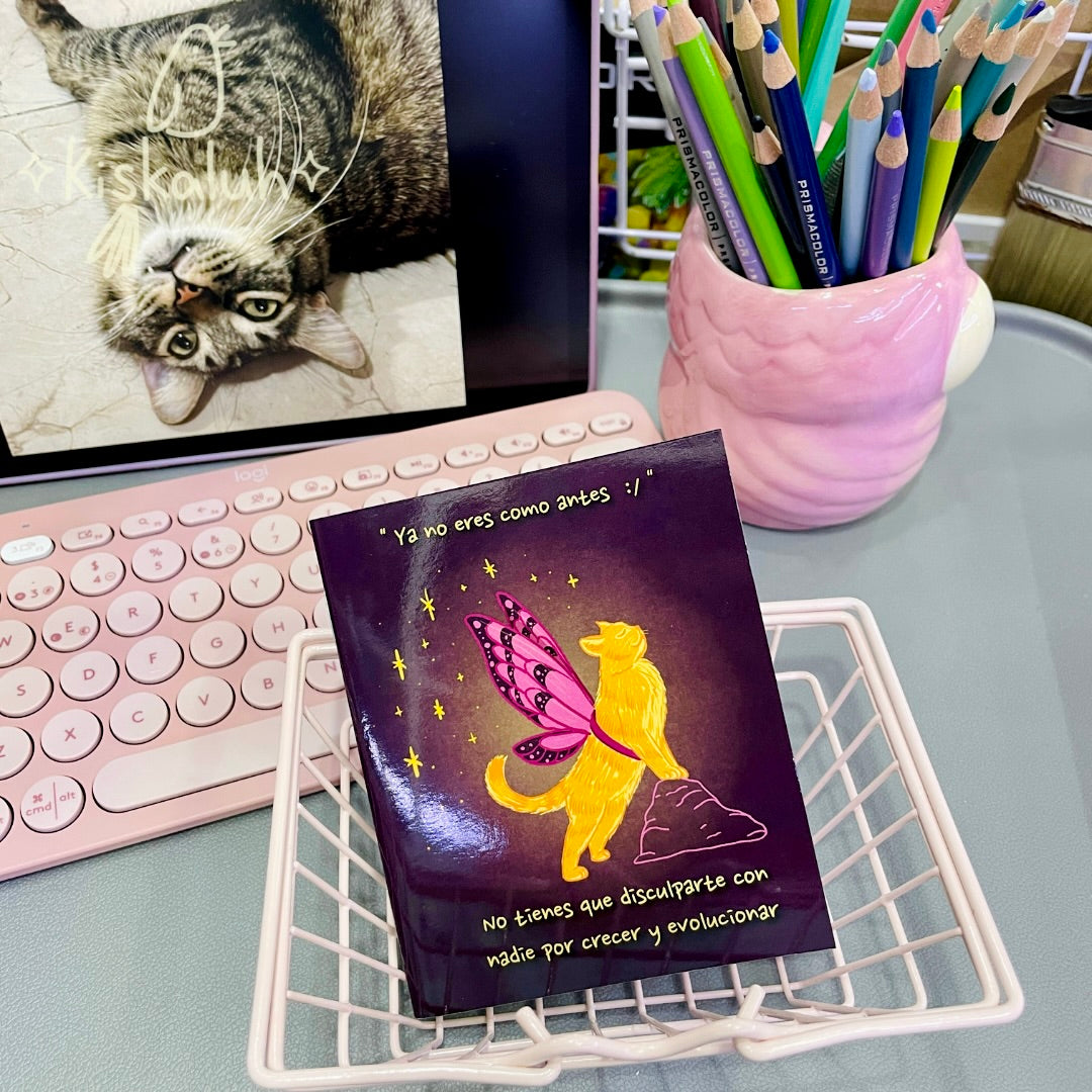 Gato mariposa, Libreta de bolsillo artesanal, 10x12 cm /3.9x4.7 in