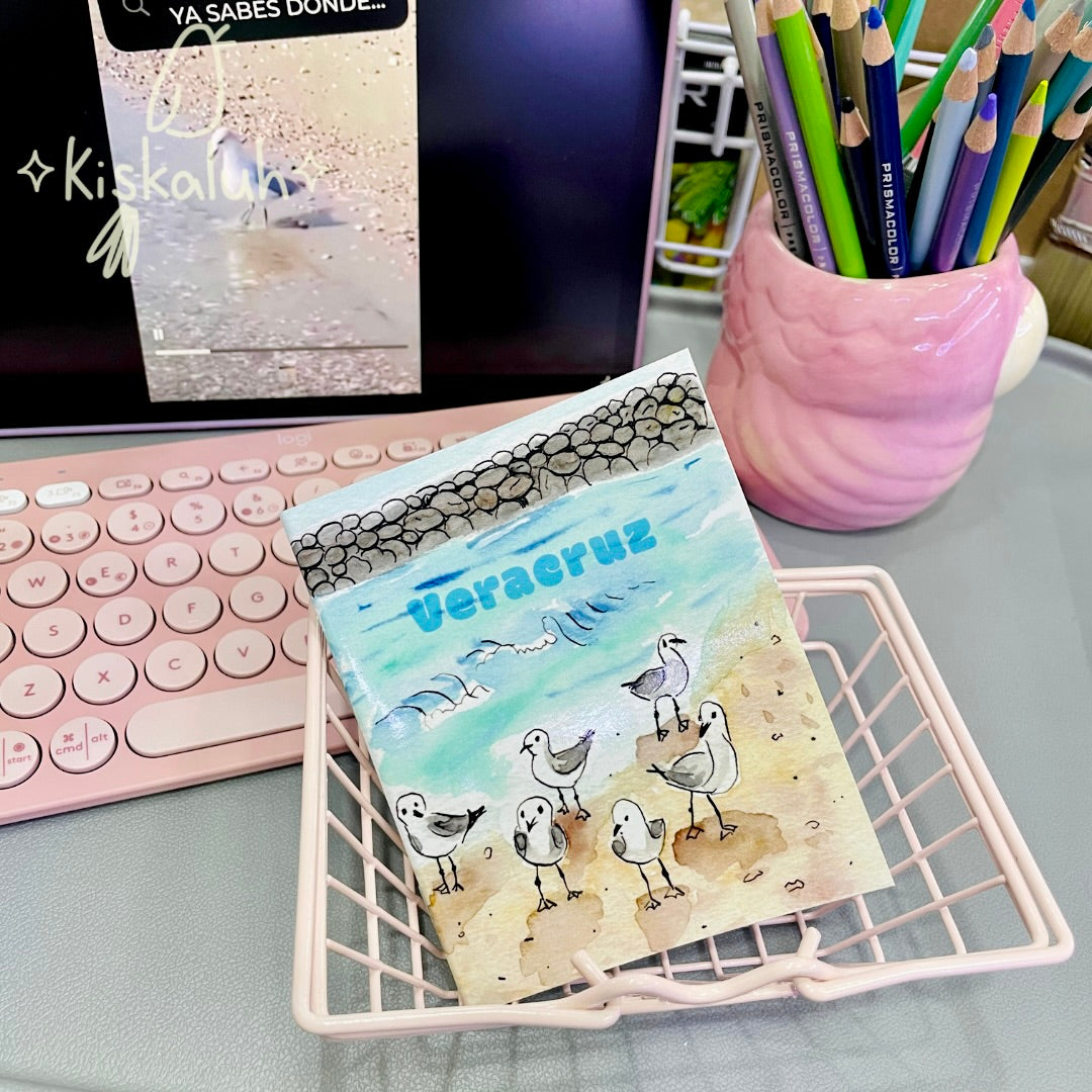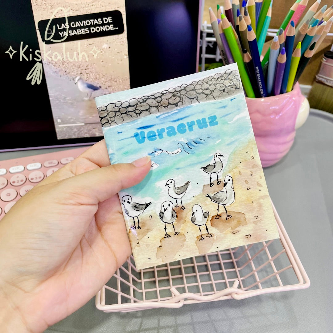Gaviotas en la playa de Veracruz - Libreta de bolsillo artesanal