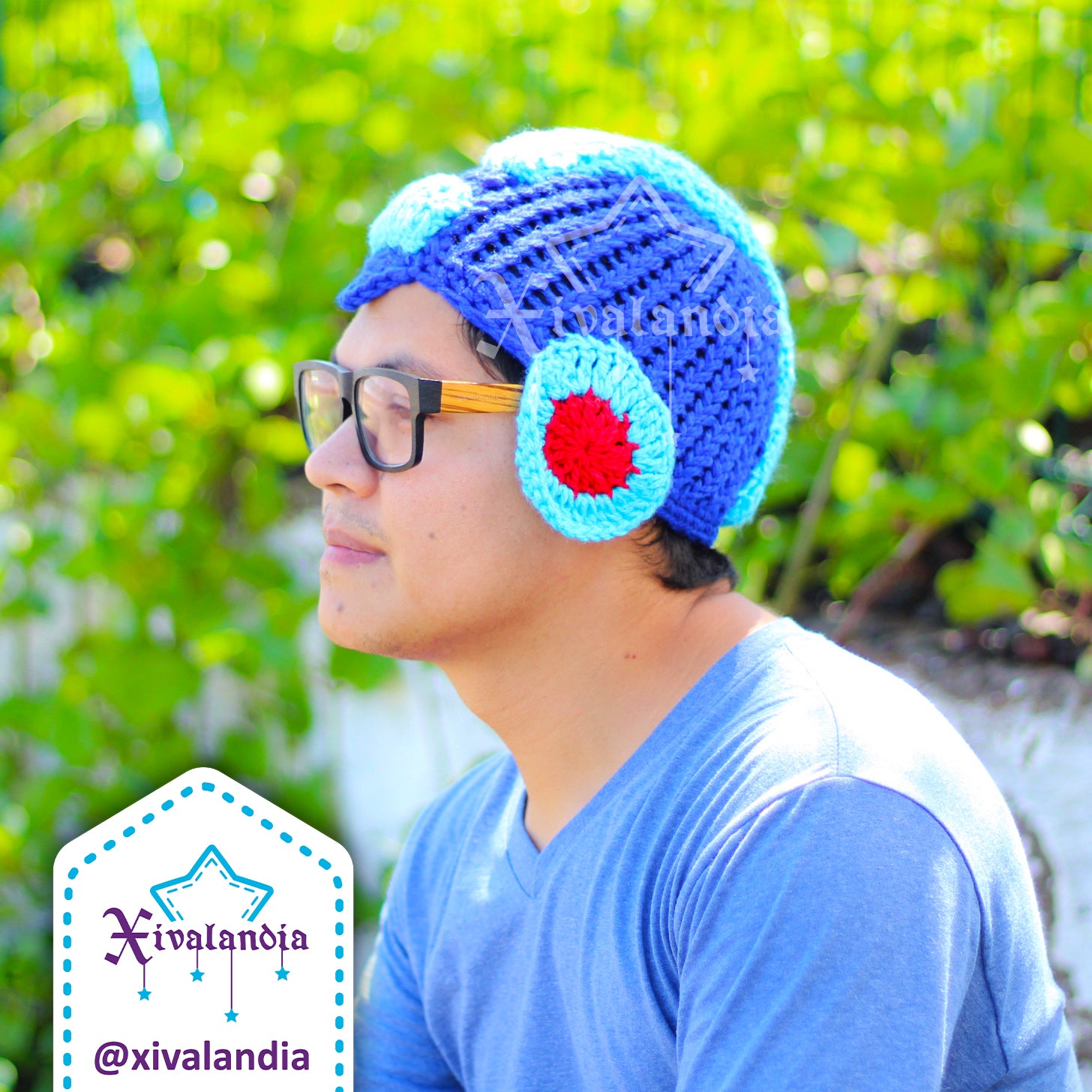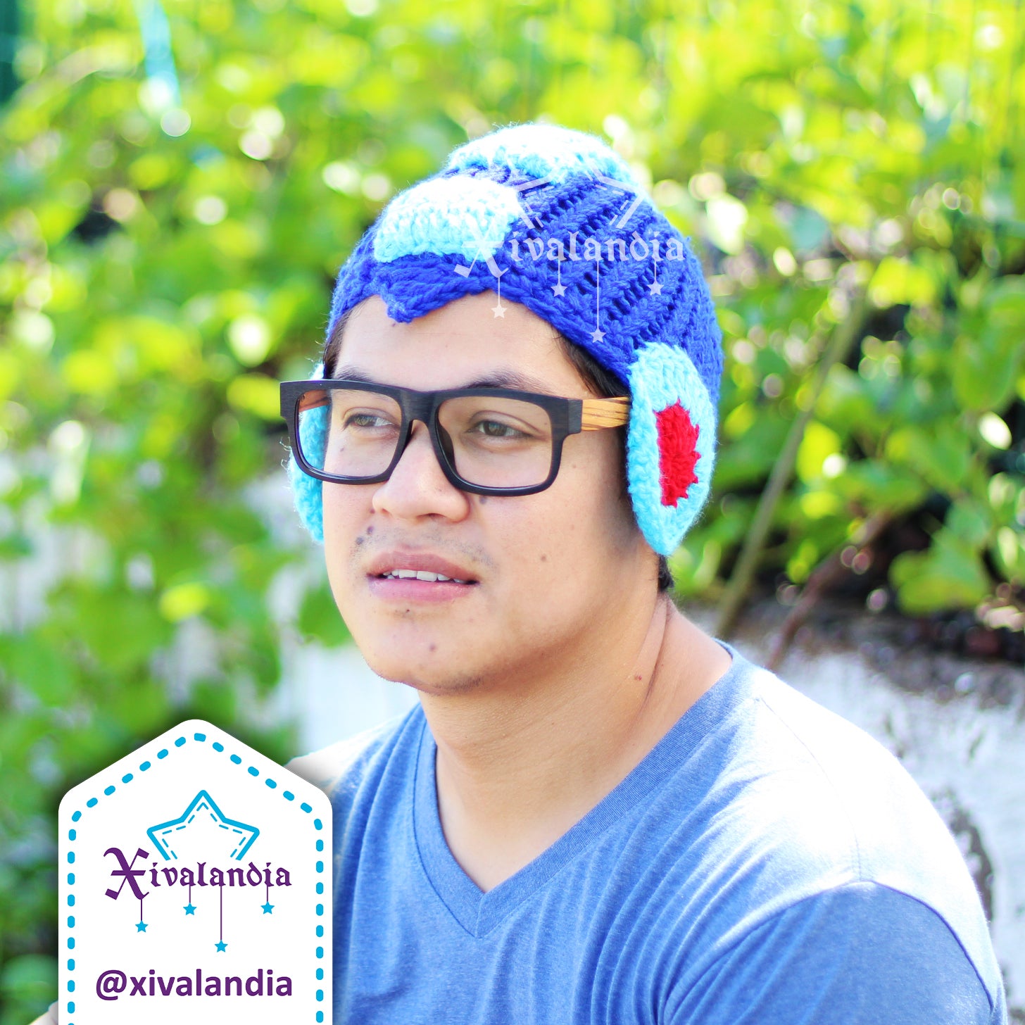 Gorro Megaman, azul, tejido artesanal, Unitalla