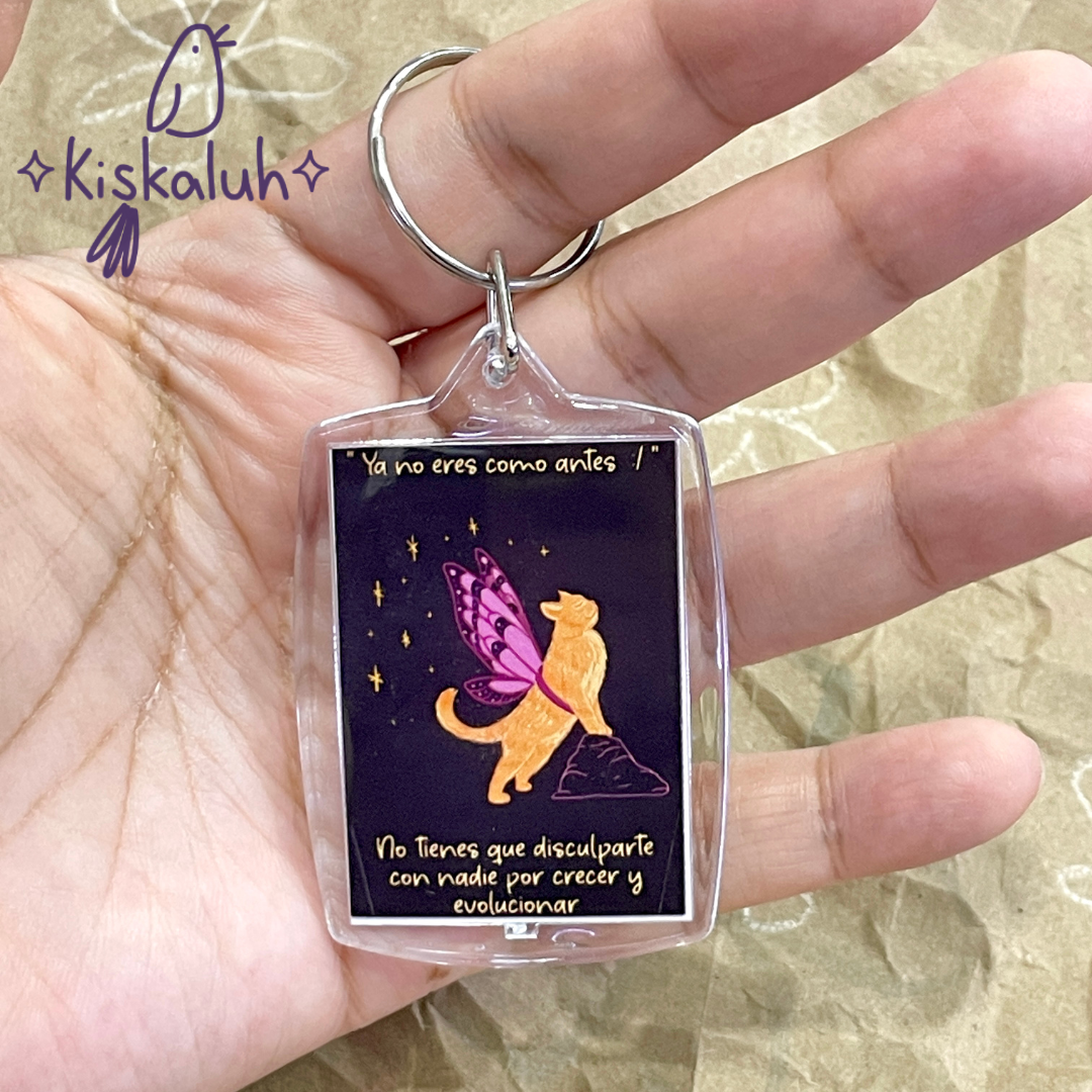 Llavero de acrílico con ilustraciones de Kiskaluh en la parte frontal y detrás dice "Veracruz, México".