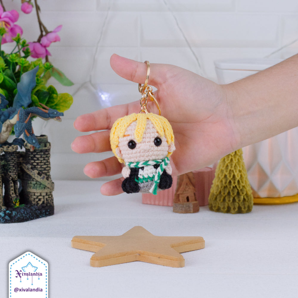 Llavero Malfoy de peluche, HP bag charm, 7cm/2.5 pulg, tejido crochet artesanal, amigurumi