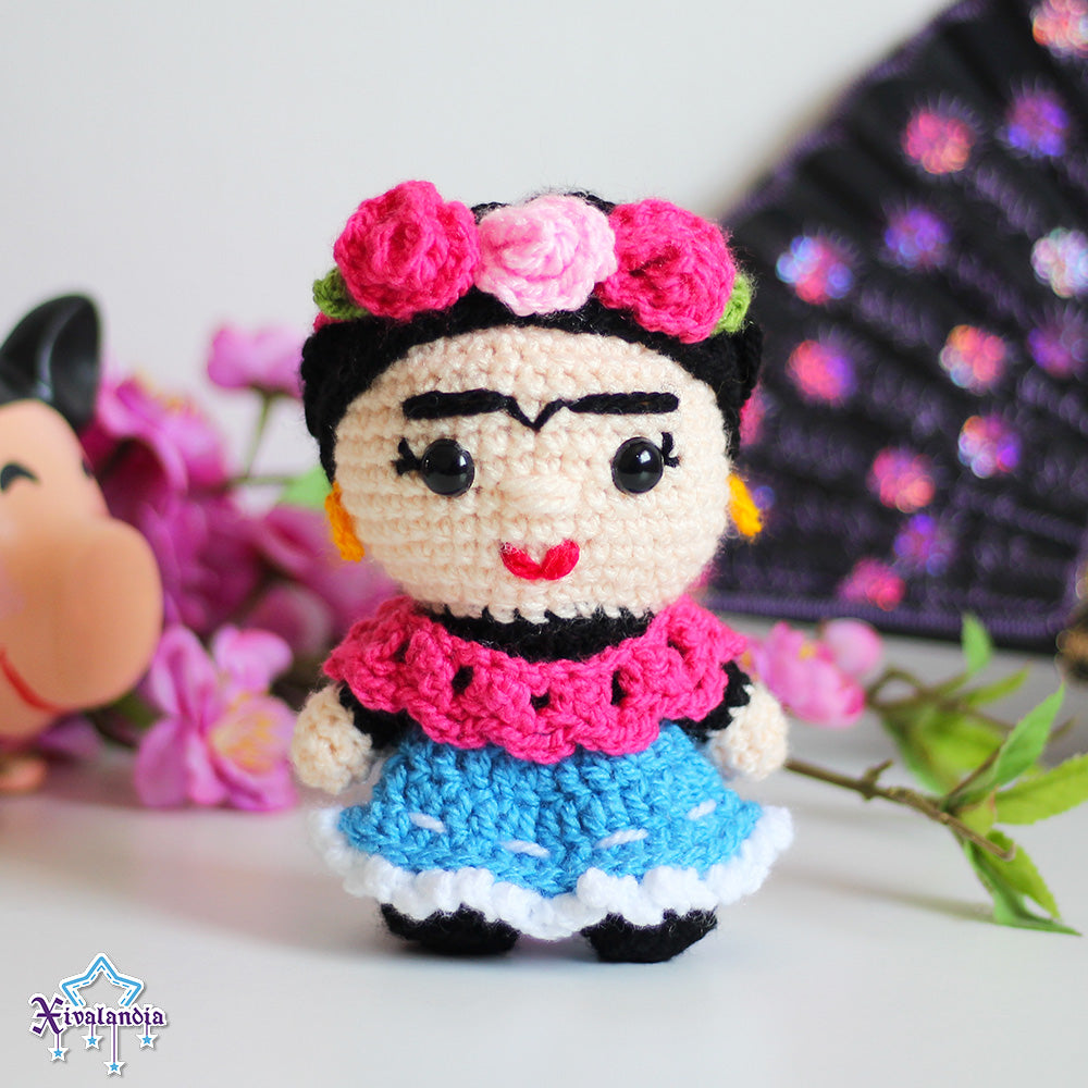 Peluche Frida Kahlo 15cm, tejido crochet artesanal, amigurumi