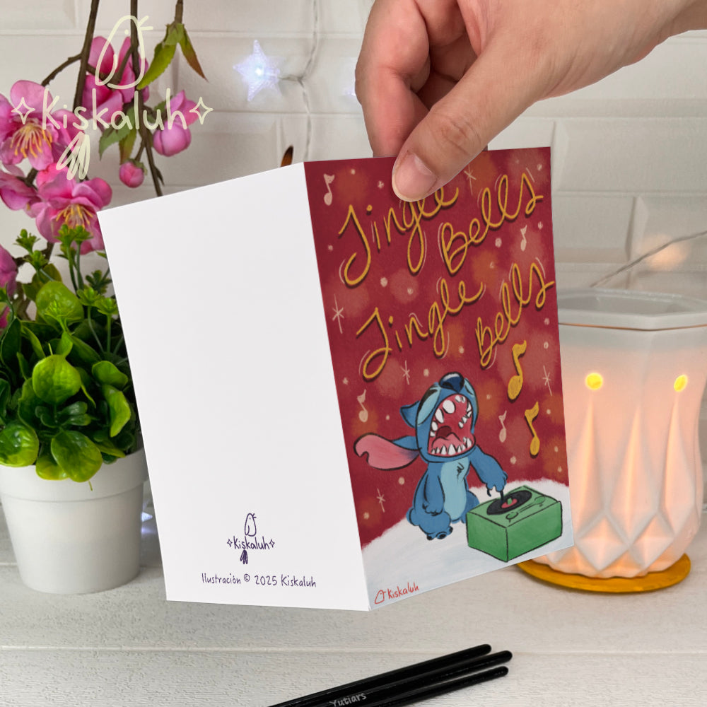 Jingle Bells Stitch - Tarjeta de felicitación - 10x15cm / 4x6 pulg. Feliz Navidad, Ilustración